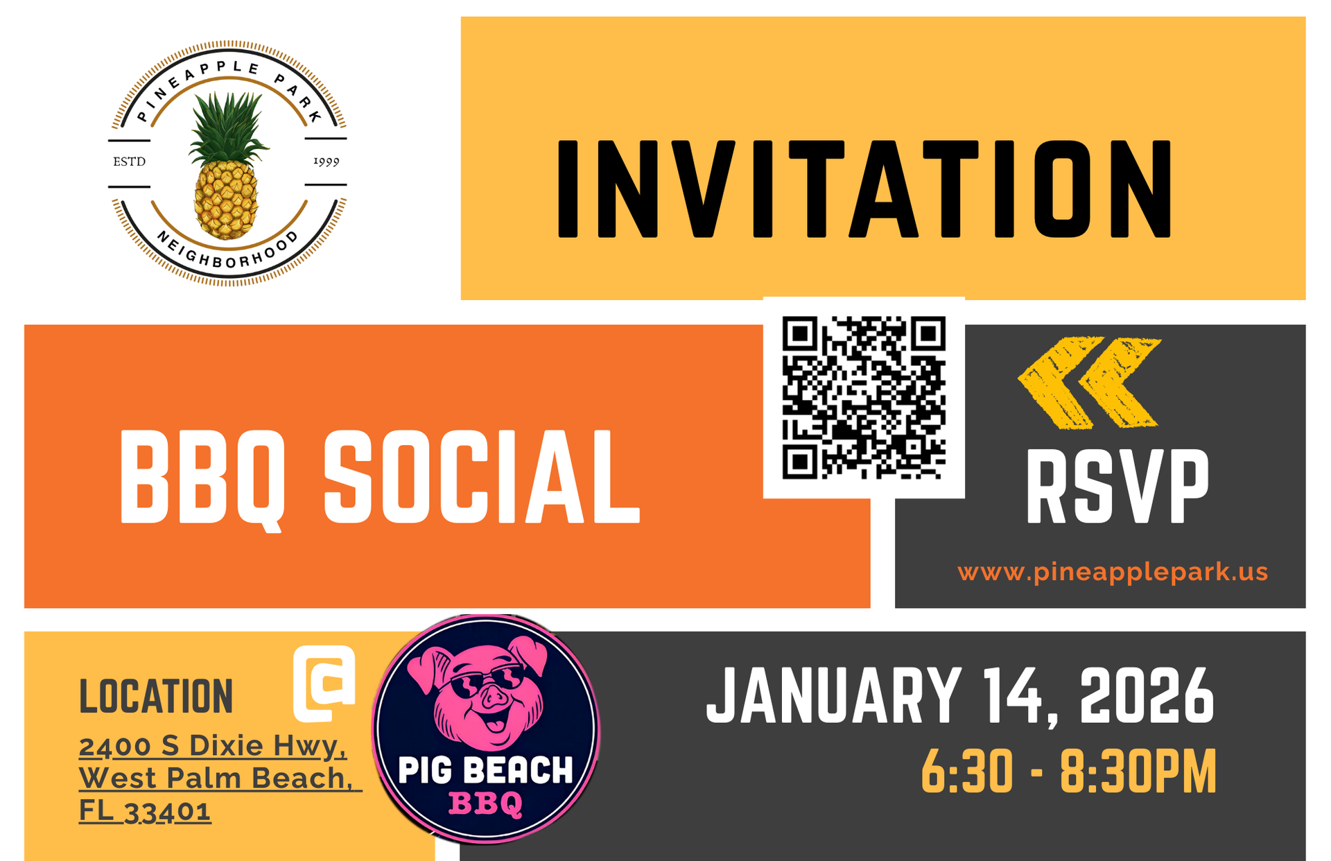 Who is invited? Everyone that lives in Pineapple Park! This event is 100% FREE for all current PPNA members (Primary & Associate).