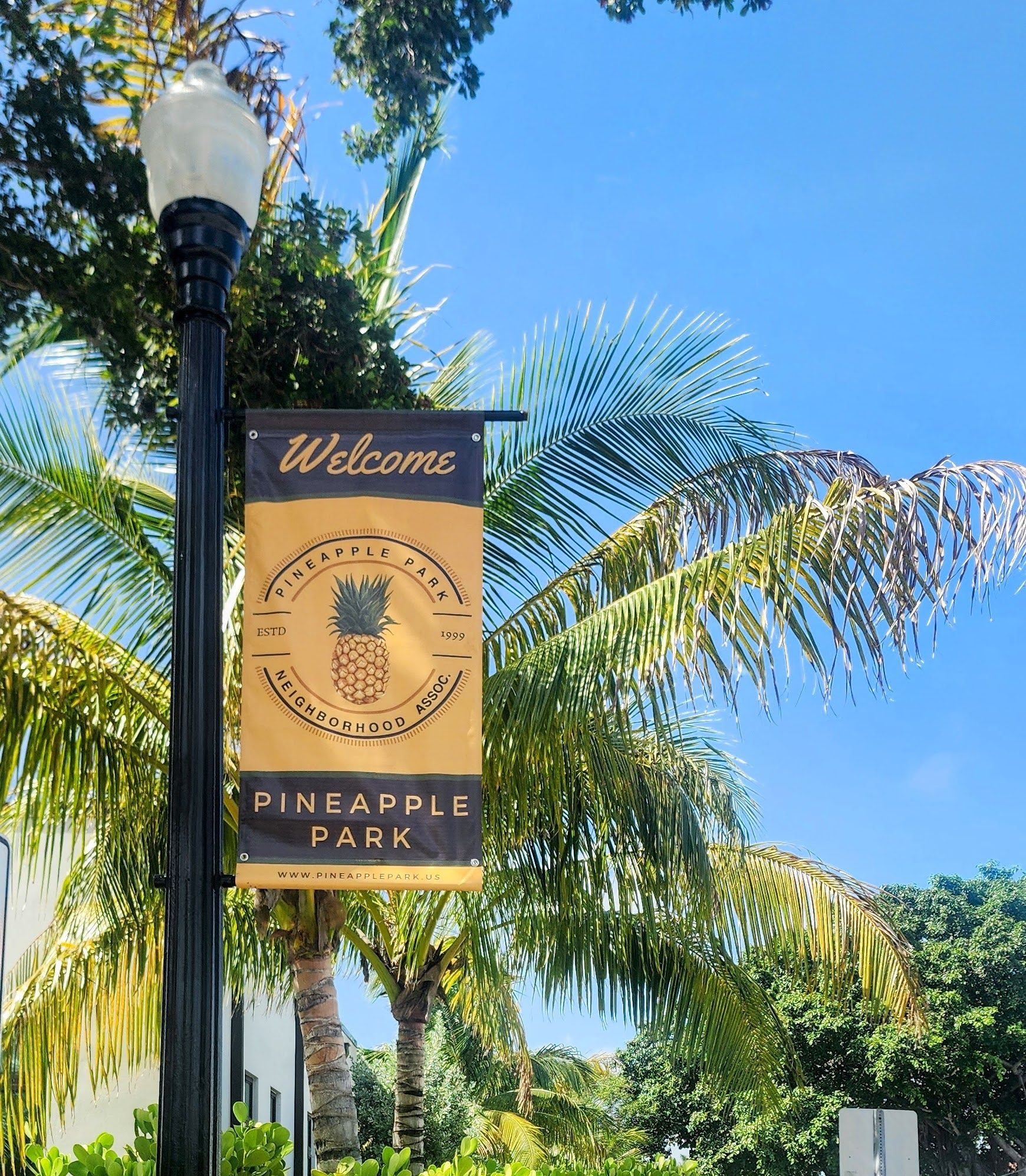 The Pineapple Park Neighborhood is excited to announce the completion of a recent improvement project. The new neighborhood banners have been installed and the lamp posts have been fully refurbished with new paint, hardware, and electrical components.
